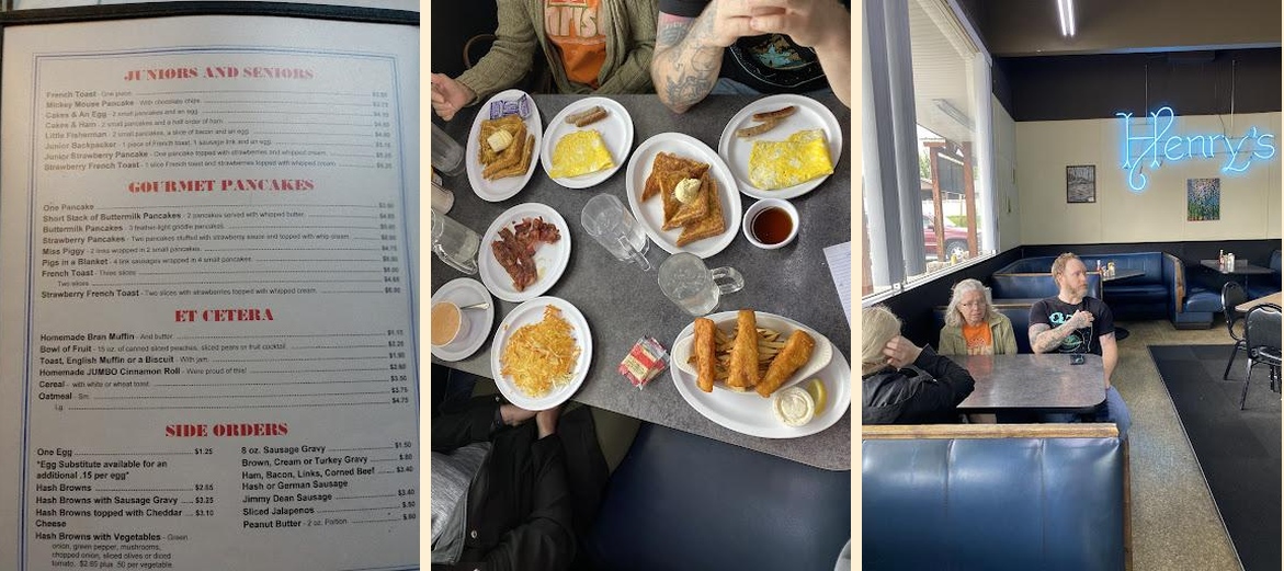 The menu features a variety of delicious dishes including chicken fried steak, hash browns, and homemade pies. It's the type of place where people gather, share stories, and relish hearty meals. If you appreciate authentic local flavors, you'll enjoy the experience at Henry's.